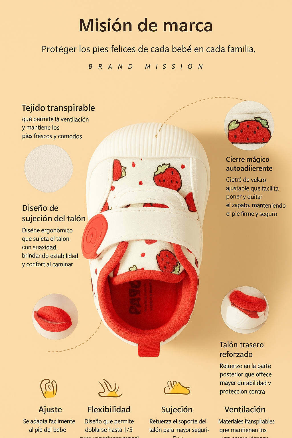 Fabricados con tejido transpirable y flexible, combinan suavidad, durabilidad y ligereza. Son perfectos para mantener los pies del bebé cómodos y frescos todo el día.