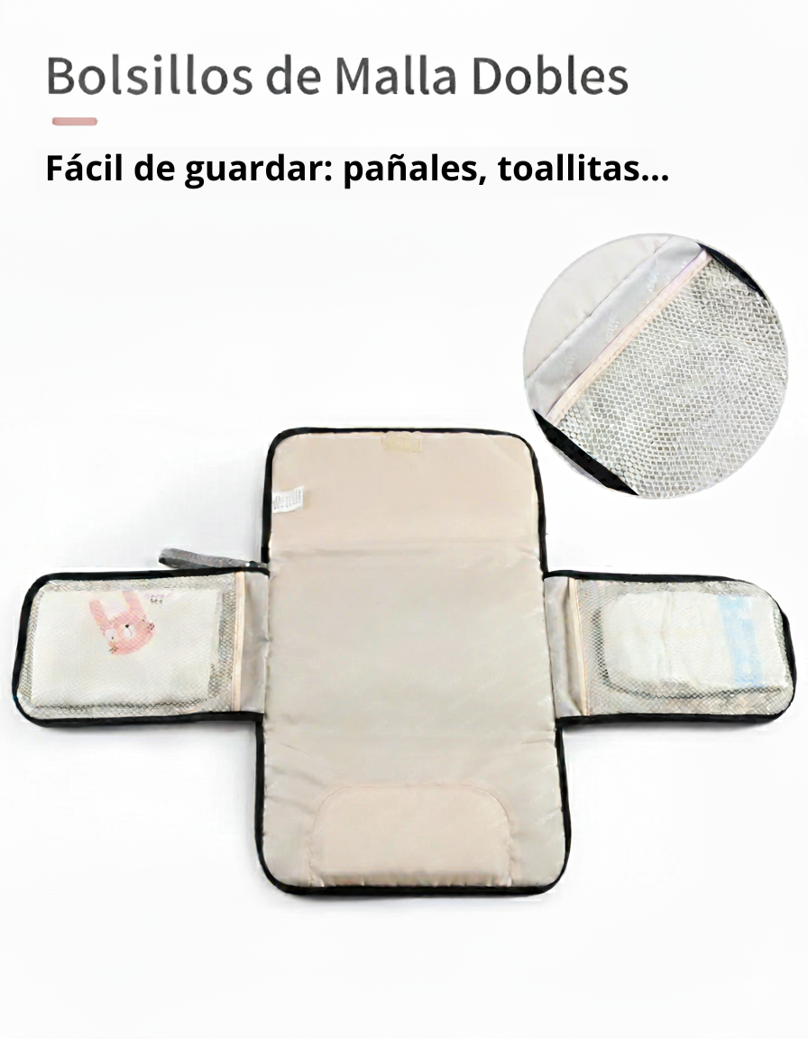 🍼 Cambiador Portátil para Bebés con Bolsillos de Malla – Comodidad y Orden a Donde Vayas