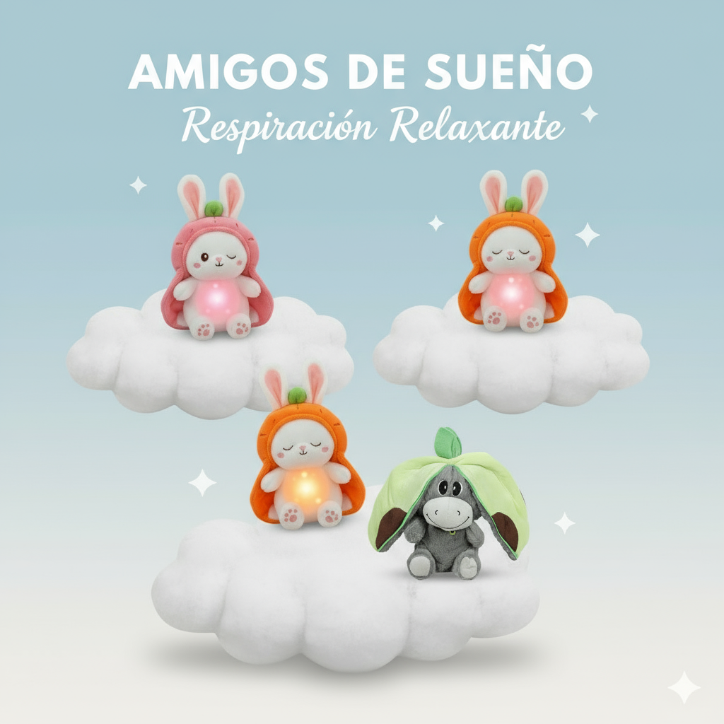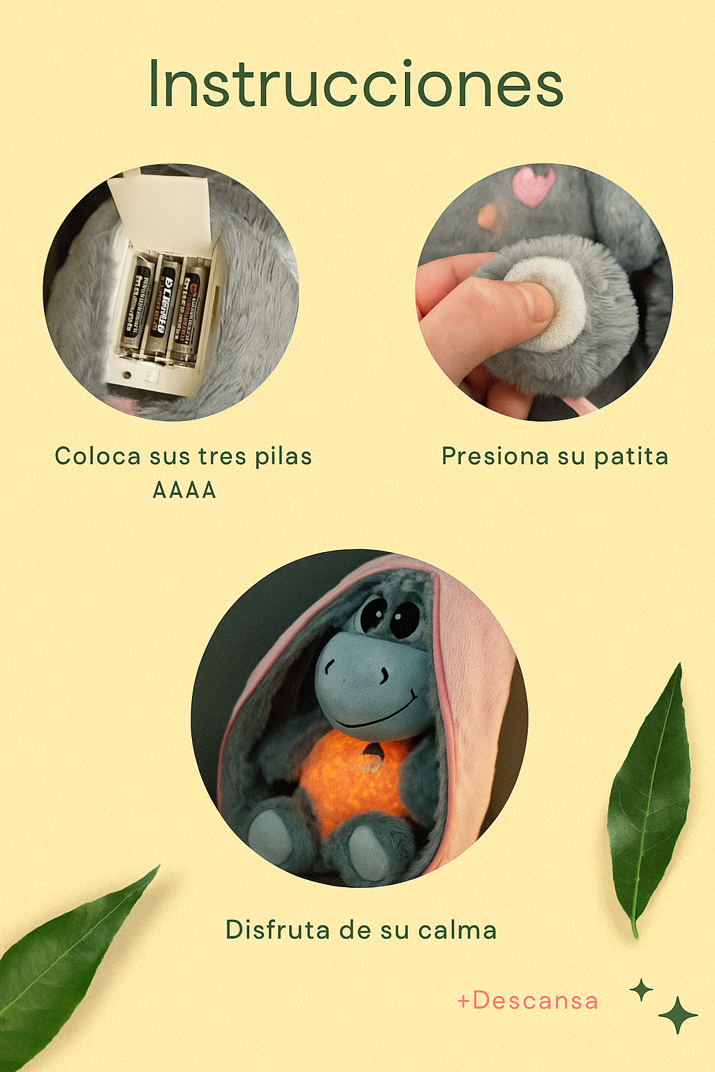 Nuestros peluches están diseñados con un mecanismo interno que simula una respiración suave y natural. El movimiento rítmico del peluche imita el patrón de respiración humana, creando un efecto calmante que ayuda a los bebés y niños a relajarse y conciliar el sueño de forma natural. Es completamente seguro y funciona sin ruidos molestos.