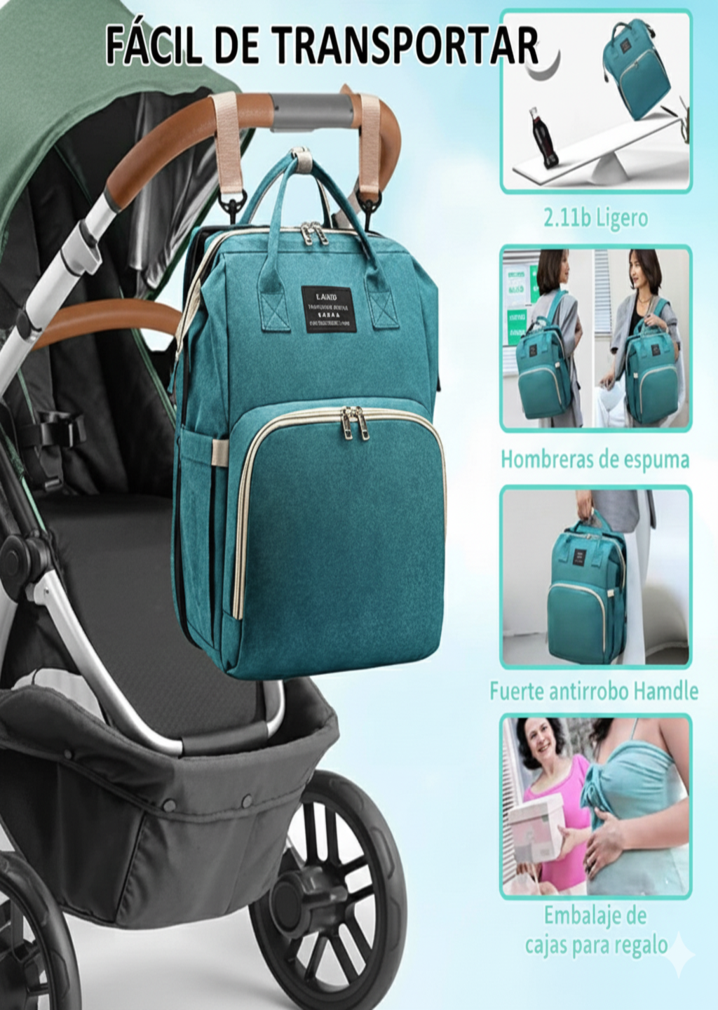 ¡Sí! Su diseño compacto y ligero la hace ideal para viajes, paseos y vacaciones. La cuna plegable permite que tu bebé descanse cómodamente en cualquier lugar, y su estructura ergonómica garantiza un transporte cómodo para los padres.